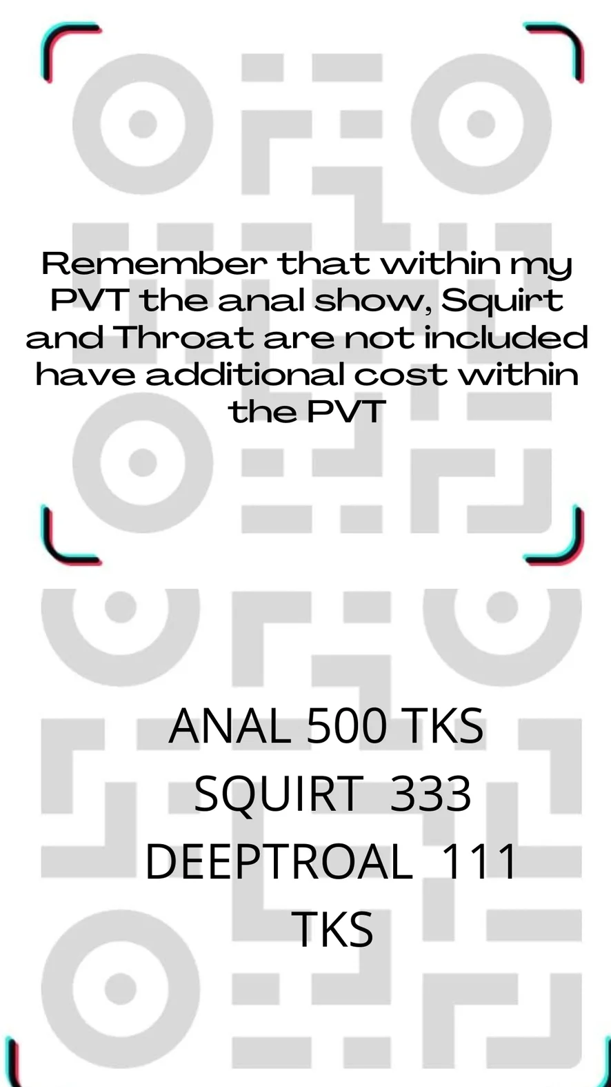 Remember that within my PVT the anal show, Squirt and Throat are not included have additional cost within the PVT