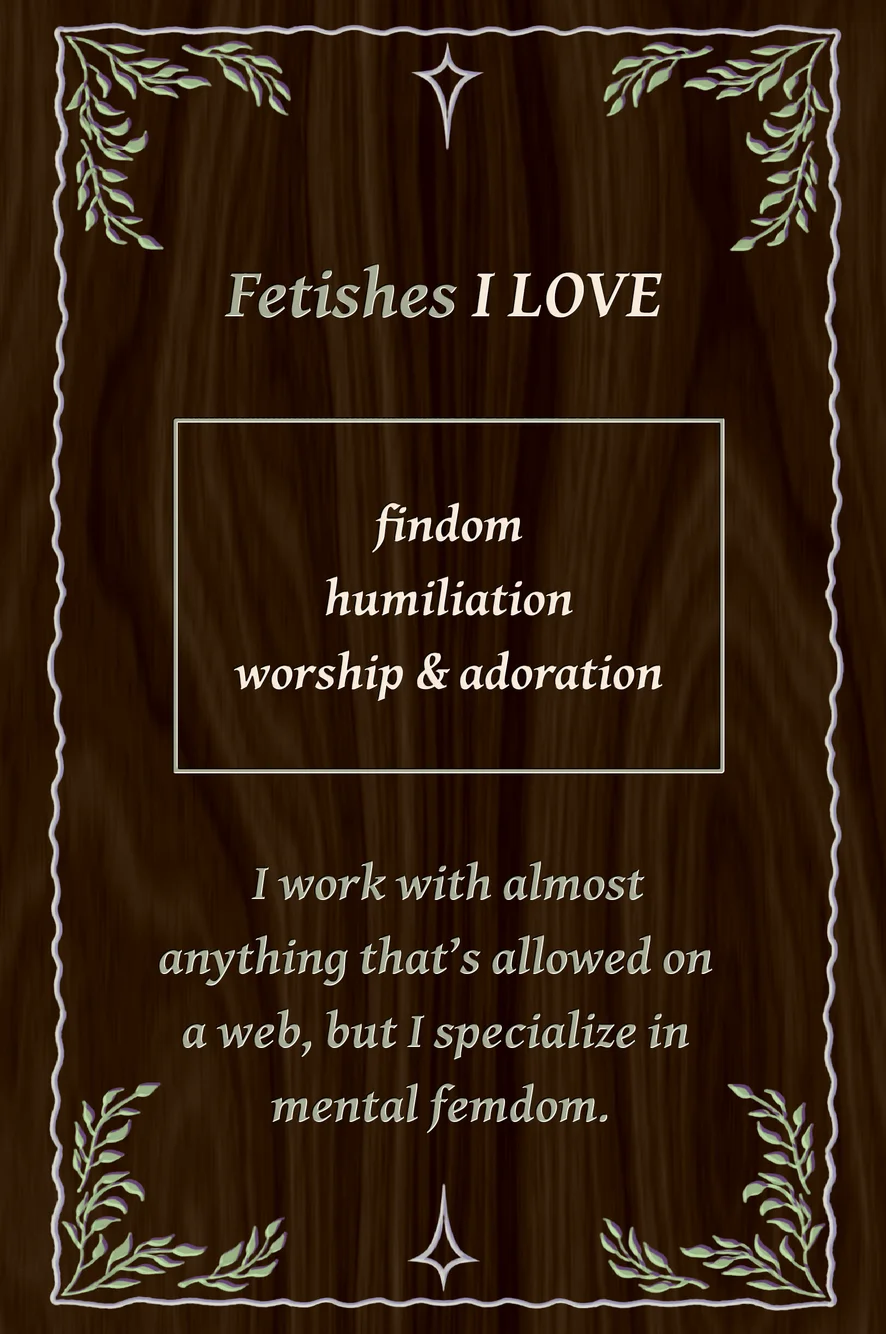 Classificação de Paus, Fetiche por Pés, Tacões, Humilhação, Brinquedos Sexuais, JOI, humili, Felácio, Conversa porca, Dança Erótica, Hardcore, Látex, Couro, Nylon, Fumar, Strapon, Topless, Punheta, Instruções para Bater Uma, CEI, Cuckold play, free lovense control, hard humiliation, body worship, footjob, cbt, Role Play, Dominadora